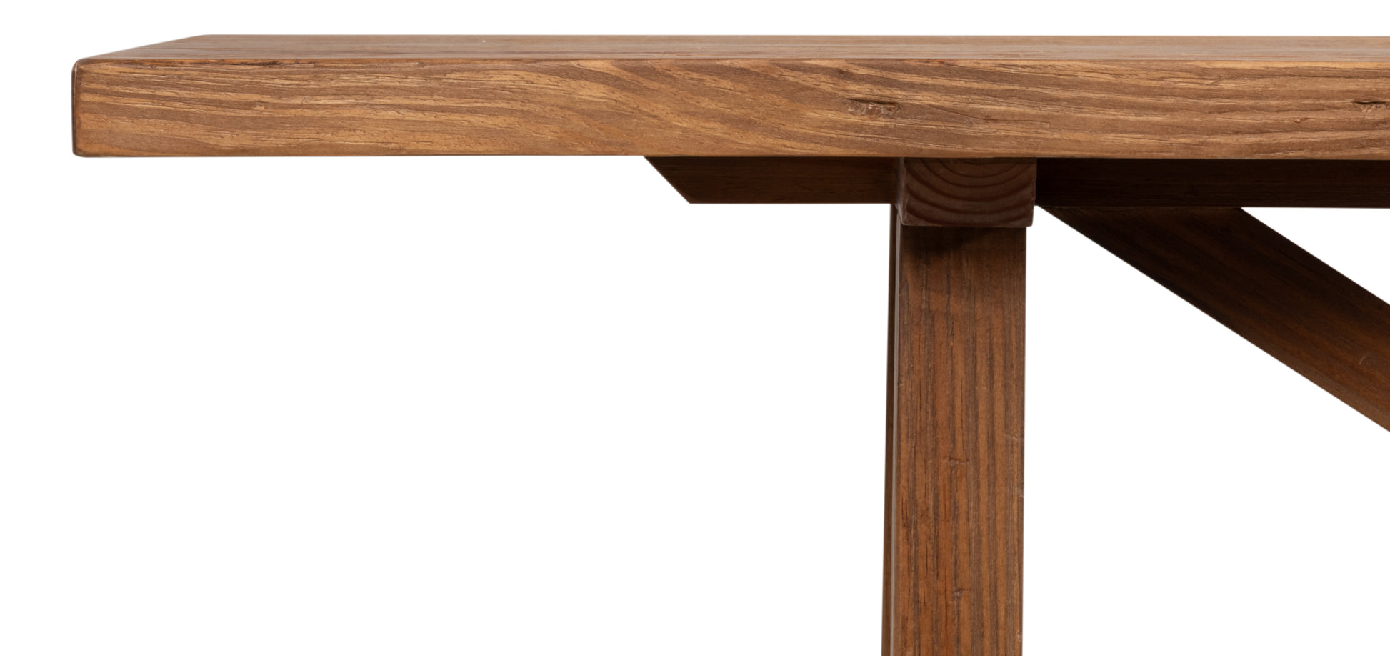 The rustic but elegant appeal of this 93'L console table is achieved by creating the look of reclaimed floor planks. Versatile in its functionality, it work as a great serving piece for your casual dining area, a greeter for guests in a large entry foyer, or the backdrop for a comfortable sofa.