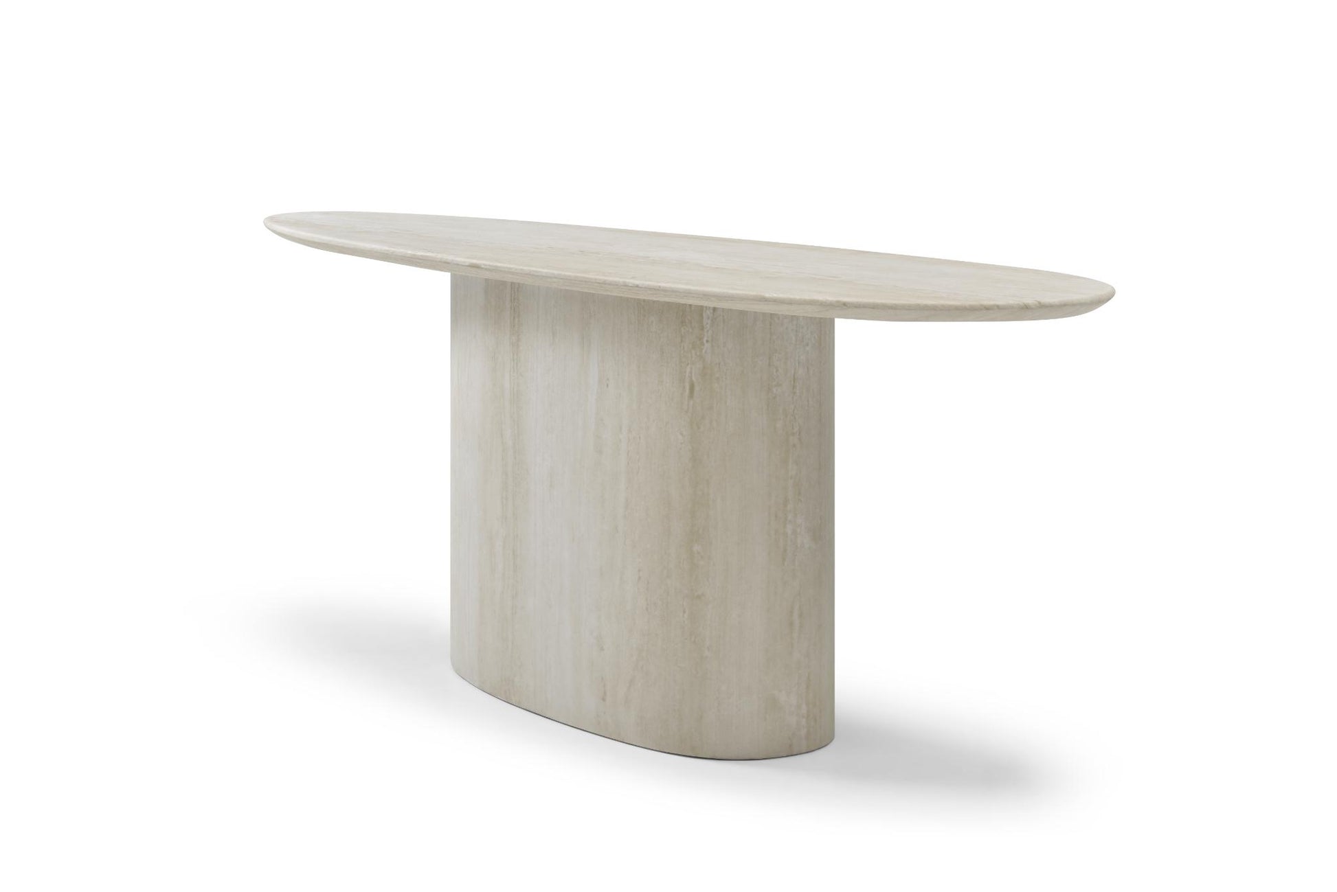 The Petra Console Table is an ode to stillness and grounded design. Crafted from genuine beige travertine marble with a smooth matte finish, its softened oval forms and sculptural base create a statement piece that feels carved from nature itself. Designed for modern living, it anchors your entryway or living room with a quiet, powerful presence.