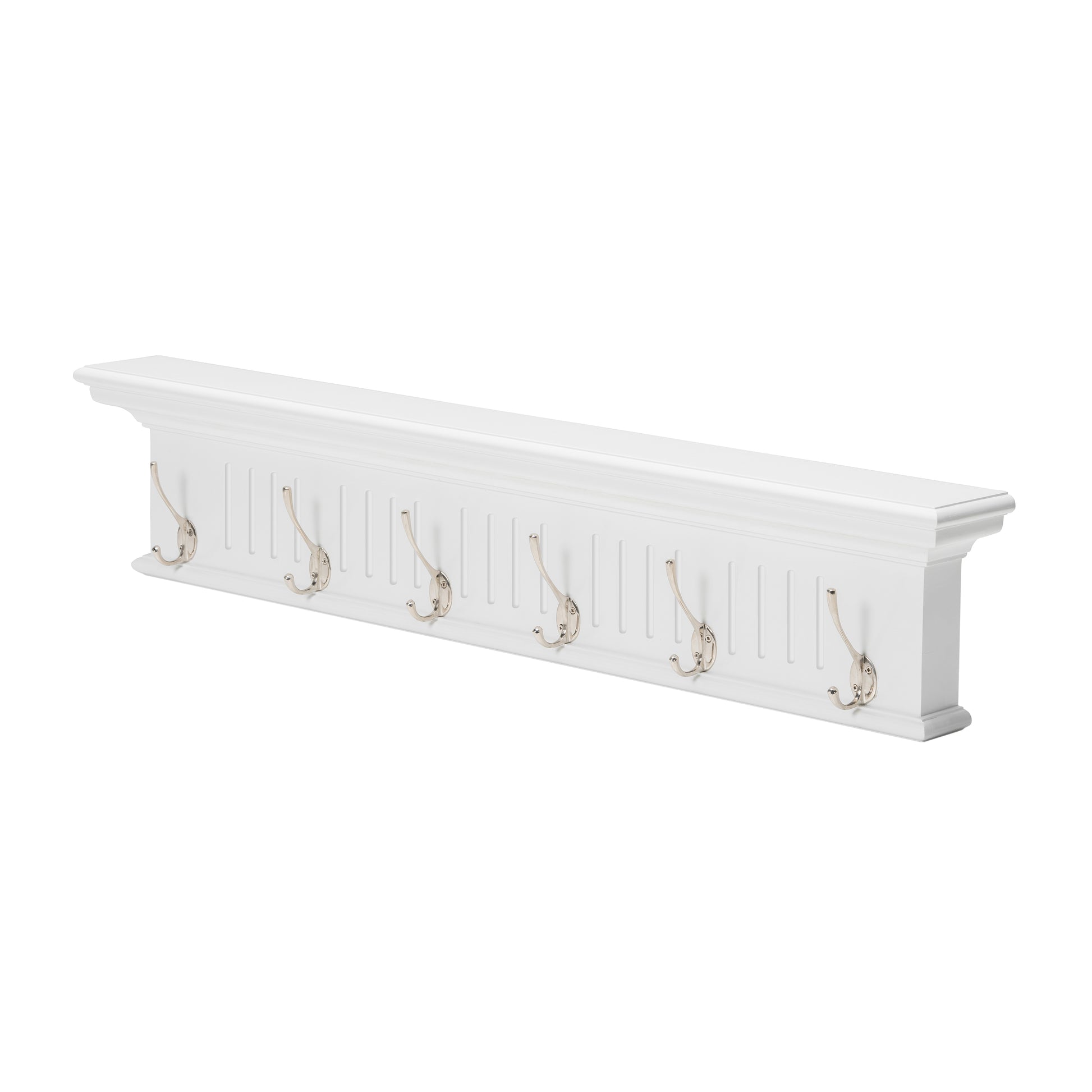Introducing the Skansen Coat Rack — a stylish and functional addition to your home's entryway. Available in 4, 6, or 8 hooks, this coat rack features a distinctive grooved design that adds a touch of sophistication to your space. Crafted with a solid mahogany frame and finished in a timeless classic white, the Skansen Coat Rack seamlessly combines durability with Nordic elegance. The large hooks, perfect for jackets, scarves, hats, or bags, provide a practical solution to keep your essentials organized and easily accessible. Elevate your hallway or entryway with the charm of this coat rack.