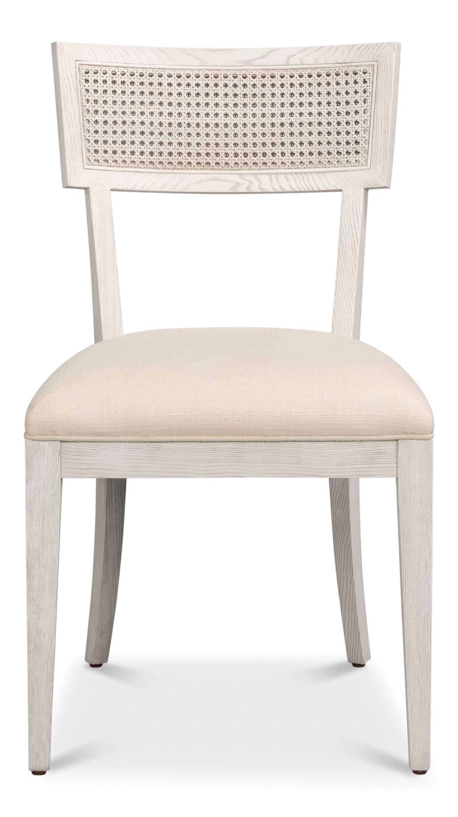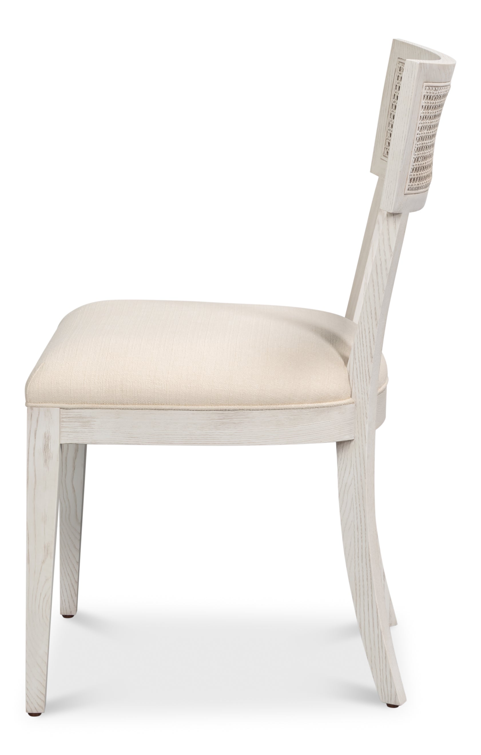 The Ridge dining chair blens clean architectural lines with artisan warmth. A hand-woven cane back adds teexture, complemented by a costal white washed frame and a comfortably cushioned seat in a neutral performance fabric. A timeless mix of natural materials and modern design.
