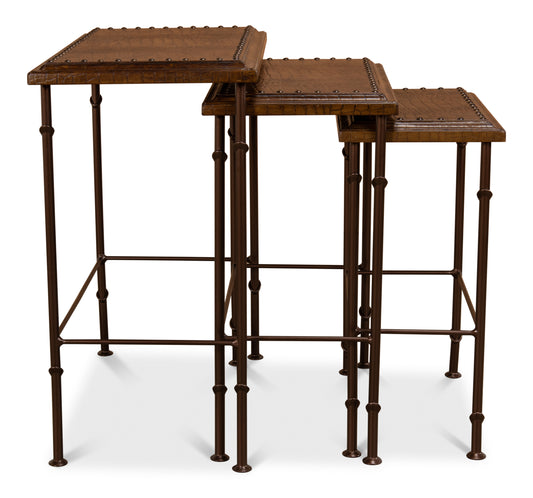 Croc Leather Nesting Tables, Set/3