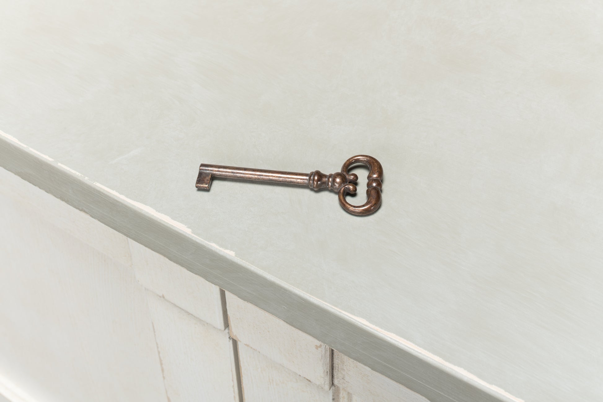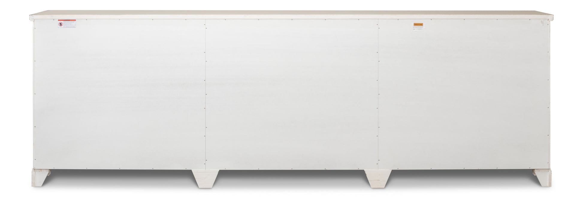 A very popular buffet from Rhapsody in Colors, the "Luciana" is shown here in their Stucco White base with a Gray wood top. The six doors reveal individual compartments, each with an adjustable shelf.