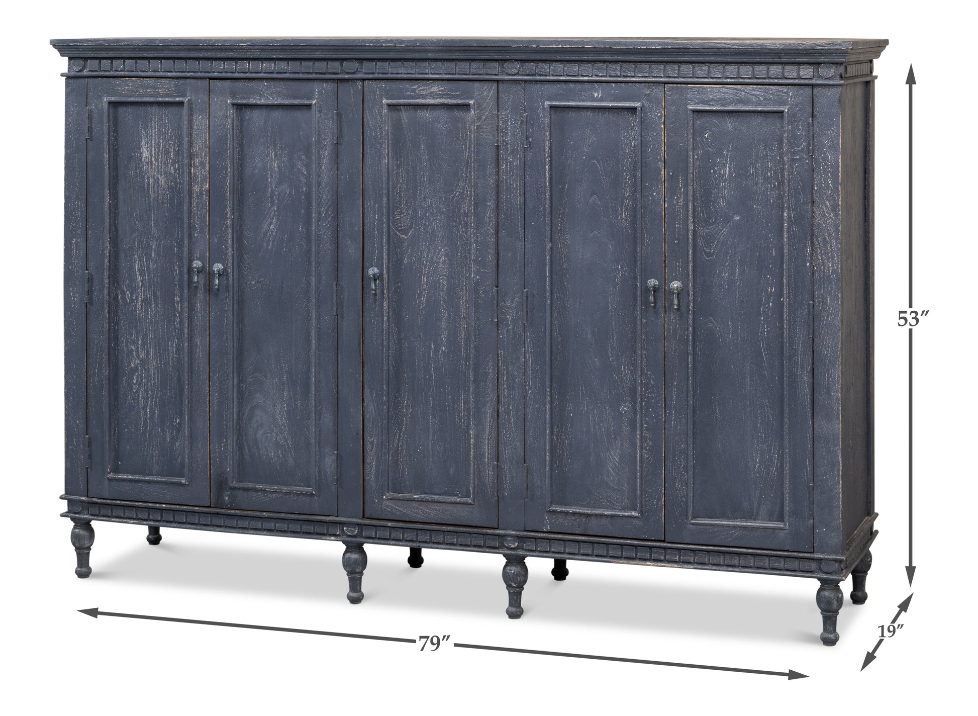 When you need that perfect piece combining style, scale functionality and charm, Ashlyn fits the bill. This five door sideboard is unique in the fact that it is generous at 79" long, narrow at 19" deep all while striking a commanding presence at 53" tall. From an entryway to a dining room to a foundation piece for a theater room, Ashlyn has limitless possibilities.