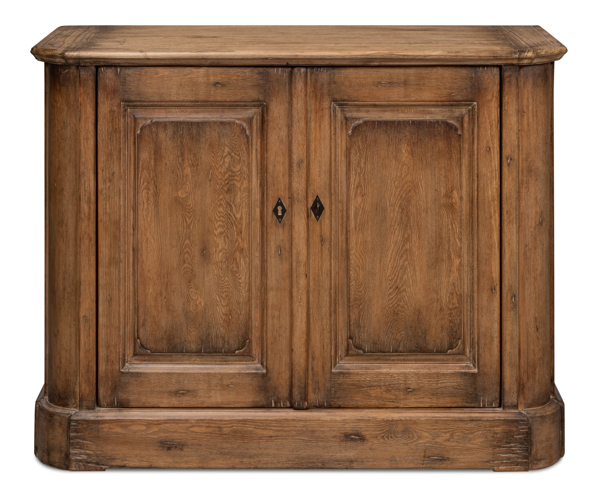 We offer three sizes in this wonderful sideboard of reclaimed pine. The interior shelves are removable. This is the smallest size. Two doors.