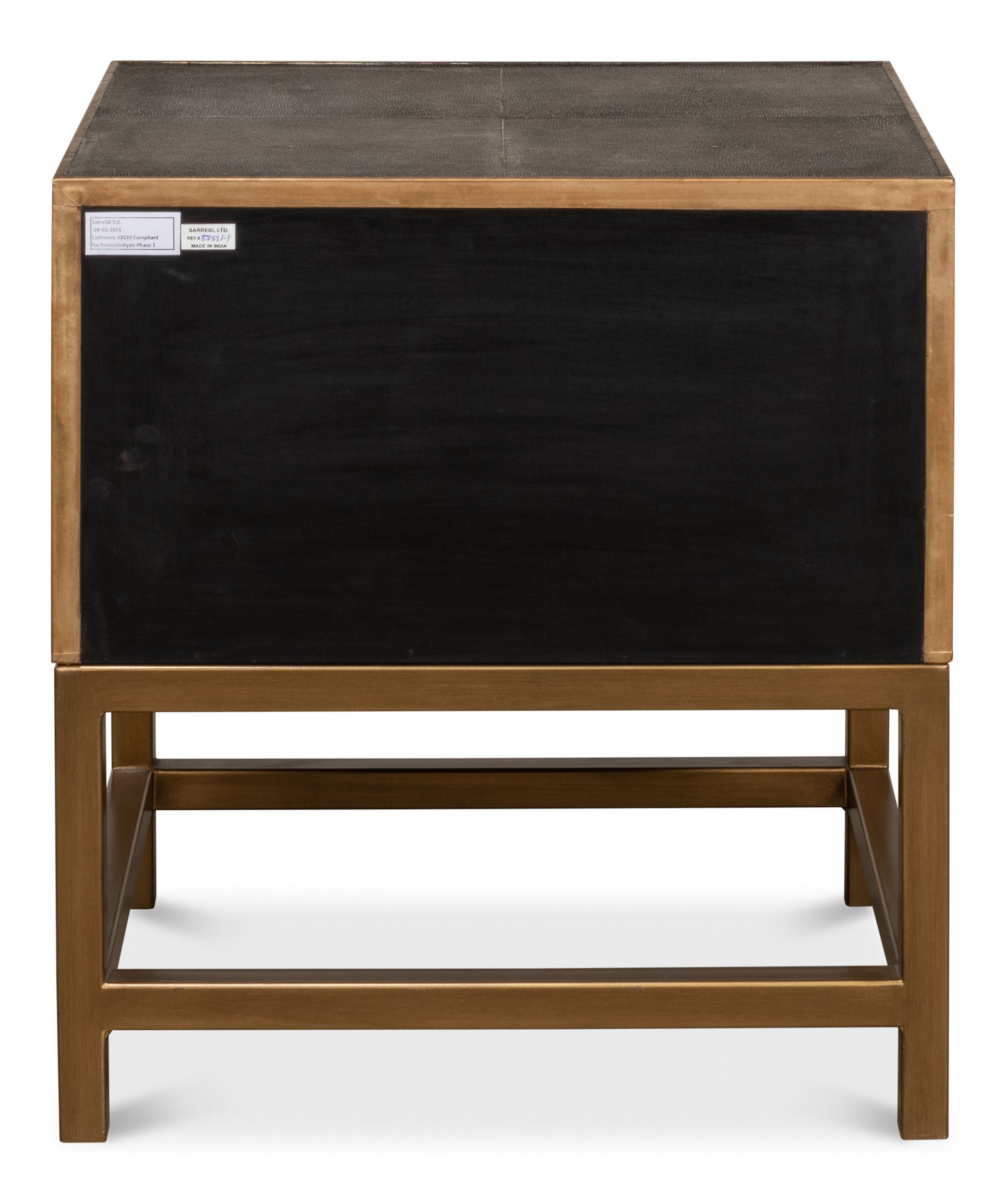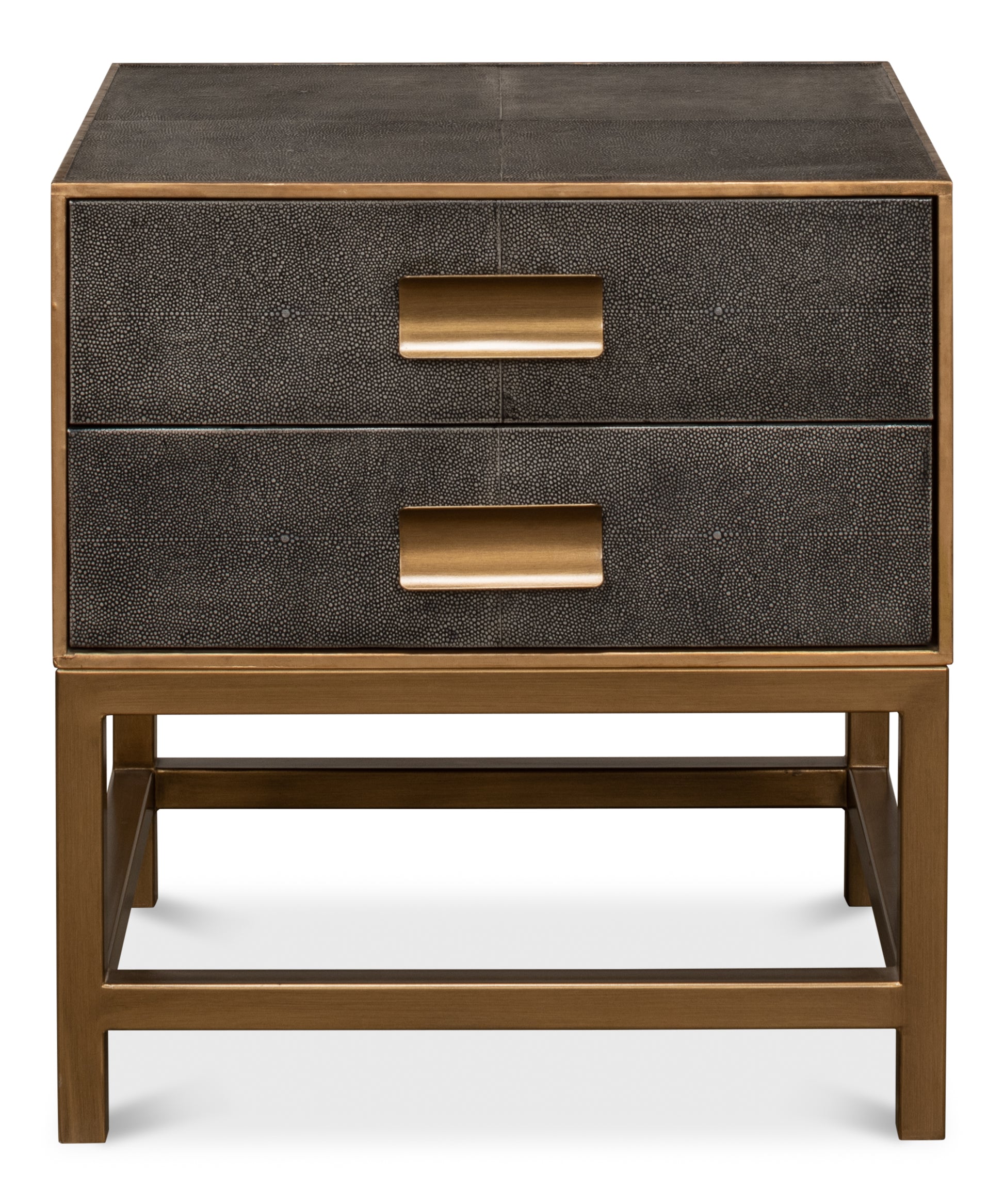 Discover love"s contemporary elegance with the Gideon Shagreen Side Table. In antique grey,gold leather trim, and brass accents, it"s a testament to the beauty of modern romance.