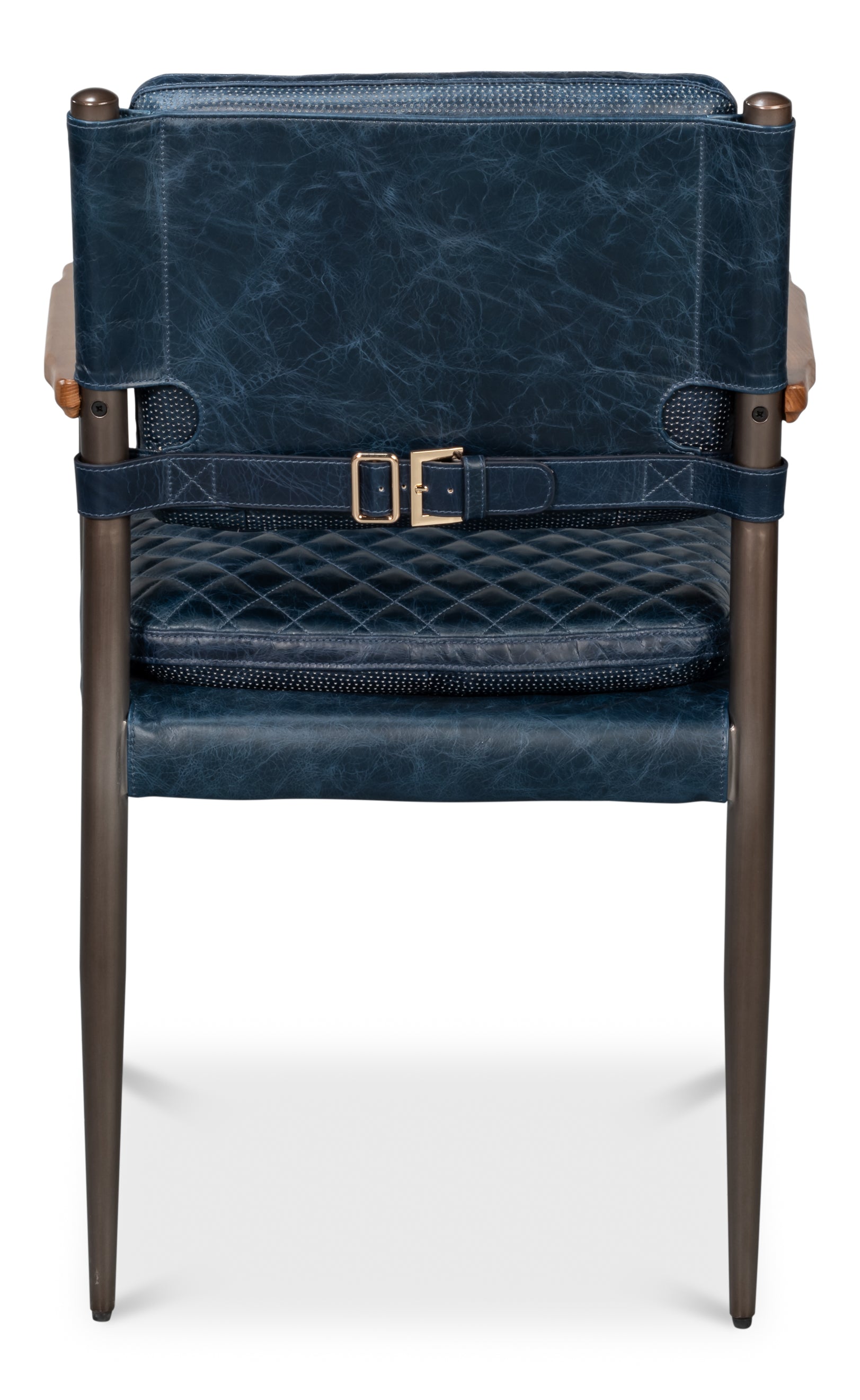 So many applications come to mind for this chair. Commercially it could be used in hotel lobbies, in waiting rooms, and in dining rooms. Quilted leather. Metal frame and wooden arms. Pure Aniline top grade cow leather. Avoid direct exposure to sunlight / heat some color variation is common and acceptable on vintage leather.